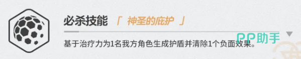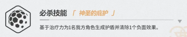 终极技能「神圣的庇护」兼具防护与解控双重功能:基于治疗力为单体生成吸收量护盾,并同步移除一个负面状态。该技能需配合战况精准释放——优先保护残血关键单位,或解除如禁疗、眩晕、易伤等高危Debuff,是扭转战局的关键应变手段。