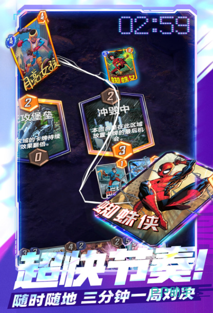 这款游戏塑造了超多声名显赫的漫威英雄,例如蜘蛛侠、钢铁侠等等,这才完美地满足了大家的收集癖好。游戏里的战斗3分钟就可以结束,忙碌的你也轻而易举能抽出这个时间,好好解压一番。游戏的关卡也会为大家带来惊喜,其中的敌人通通都是大家耳熟能详的漫威反派,大家可以组合不同的阵容应战。