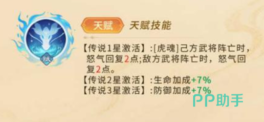 其天赋系统同样具备极高战略价值。当星级达到传说1星时,激活“虎魂”特性:每当己方单位阵亡,赵云立即恢复2点怒气;同理,敌方单位死亡时亦可获得相同怒气回复。这意味着他在团战中能够更快积攒能量,频繁释放高伤技能。晋升至传说2星后,生命上限提升7%;达到传说3星则防御属性提升相同比例,进一步巩固其续航与抗压能力。