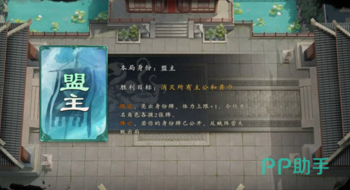 其中,“盟主”是反贼阵营的战略核心。担任此身份时,可根据局势决定是否开局亮明身份。若选择隐藏,则需谨慎把握公开时机——一旦揭示身份,不仅体力上限提升1点,还能令任意两名角色各摸两张牌,极大增强团队续航能力。值得注意的是,若盟主未公开身份期间有反贼被击杀,击杀者将获得额外手牌奖励且体力上限+1。因此,合理延迟亮明身份有助于积累优势,但必须确保生存,因为盟主阵亡即意味着反贼阵营直接失败。