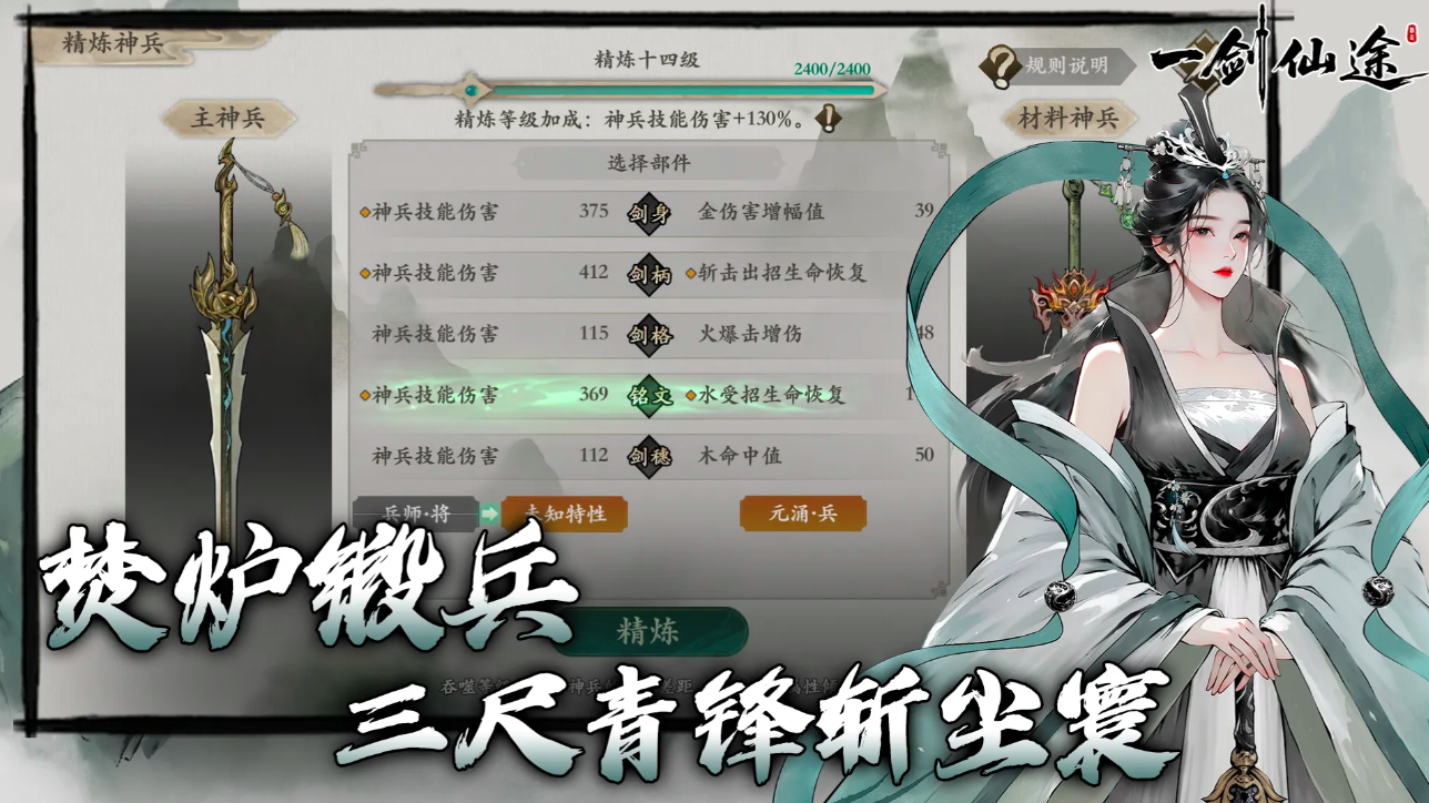 养成体系打破传统职业绑定机制,强调个性化成长路径:玩家可通过研习武学典籍、锻造专属兵器、炼制本命飞剑等多维操作,自主构建战斗风格。淬炼、祝灵等深度炼器玩法均由玩家全程主导,赋予修真养成更强的策略性与仪式感。