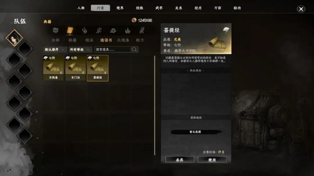 要开启镜无双的招募任务线,首先必须满足三项基础属性要求:角色的道学、儒学与佛学三项技艺的熟练度均需达到1000点。在此基础上,还需集齐三本关键典籍——玄门法、书院卷以及菩提金,缺一不可。