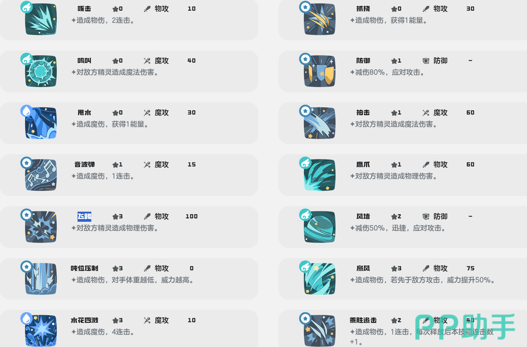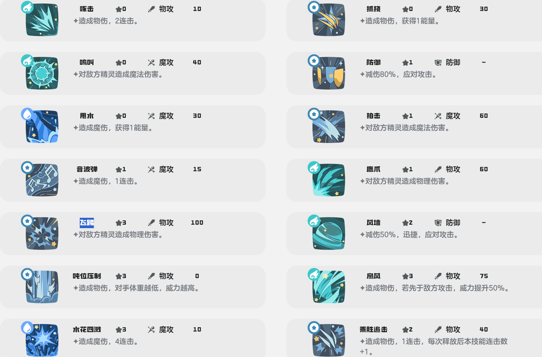 蓝珠天鹅属于水属性的精灵,它拥有比较高的物理伤害,比如飞踢的种族值是100,一旦施展时可以给敌人造成物理伤害,另外它还具备魔法伤害,比如鸣叫。蓝珠天鹅的扇风是物理攻击,可以造成物理伤害。如果比敌人先攻击,那么它所产生的威力将会提高50%。
