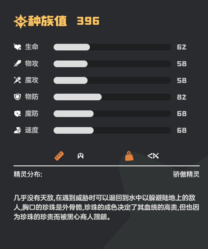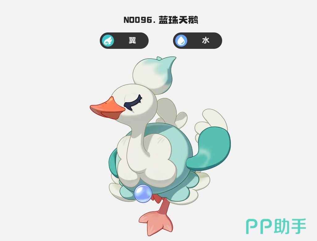 蓝珠天鹅的种族值是396,在游戏中,它其实没有任何的天敌相对来说是比较强悍的,对于玩家来说,它们在体验游戏的时候,知道蓝珠天鹅是由乖乖晧进化而来。它在战斗的时候,如果碰到威胁会直接退回到水中,这样的话就能够轻轻松松地躲避陆地上的敌人。
