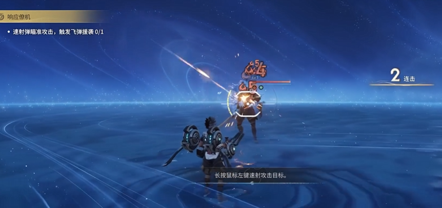 二技能“僚机部署”为核心常驻机制:释放后召唤可移动辅助单位,无冷却时间限制。普攻支持点射与长按连射两种模式,僚机将同步进行协同射击;每命中敌方目标10次,自动积蓄一枚飞弹并触发爆炸伤害。
