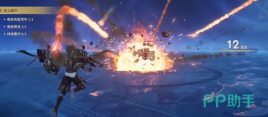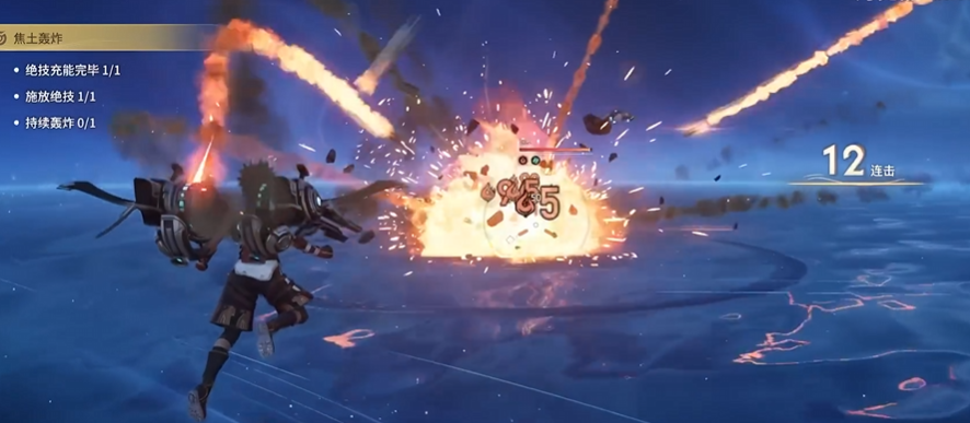 大招“超载轰击”为指向型大范围AOE技能,向前方扇形区域密集投射飞弹,对路径内敌人造成多段爆炸伤害。实战中需优先利用三技能快速填充兴奋值——因榴弹单次积攒效率远高于普攻,合理衔接榴弹释放节奏,是稳定进入解限模式、最大化输出循环的关键。