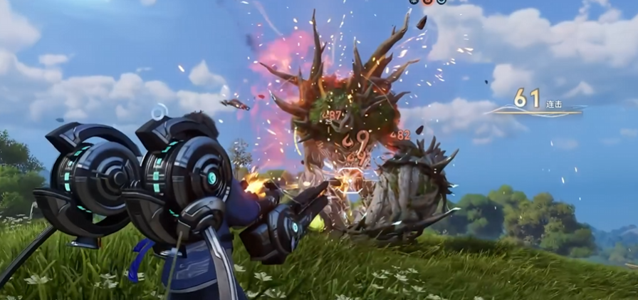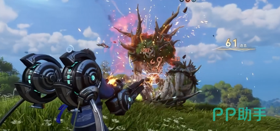 兴奋值系统是蒙犽的核心成长引擎:普攻与榴弹炮均可积攒进度条,满格后激活“解限模式”。该状态下普攻转为多弹道子弹+飞弹齐射,模式结束时还将倾泻一轮高密度飞弹群,形成阶段性火力峰值。