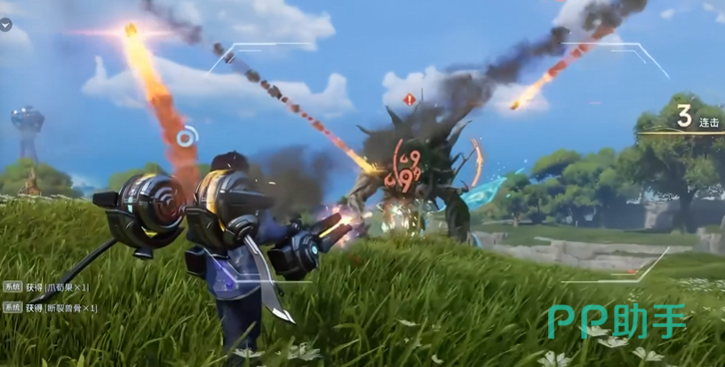 三技能“榴弹重炮”切换武器形态,实现范围溅射打击。角色左侧实时显示榴弹储备量,满充状态下可连续发射6发,弹药随时间自然恢复。开启期间,僚机攻击模式同步升级为飞弹投射,显著强化区域压制力。