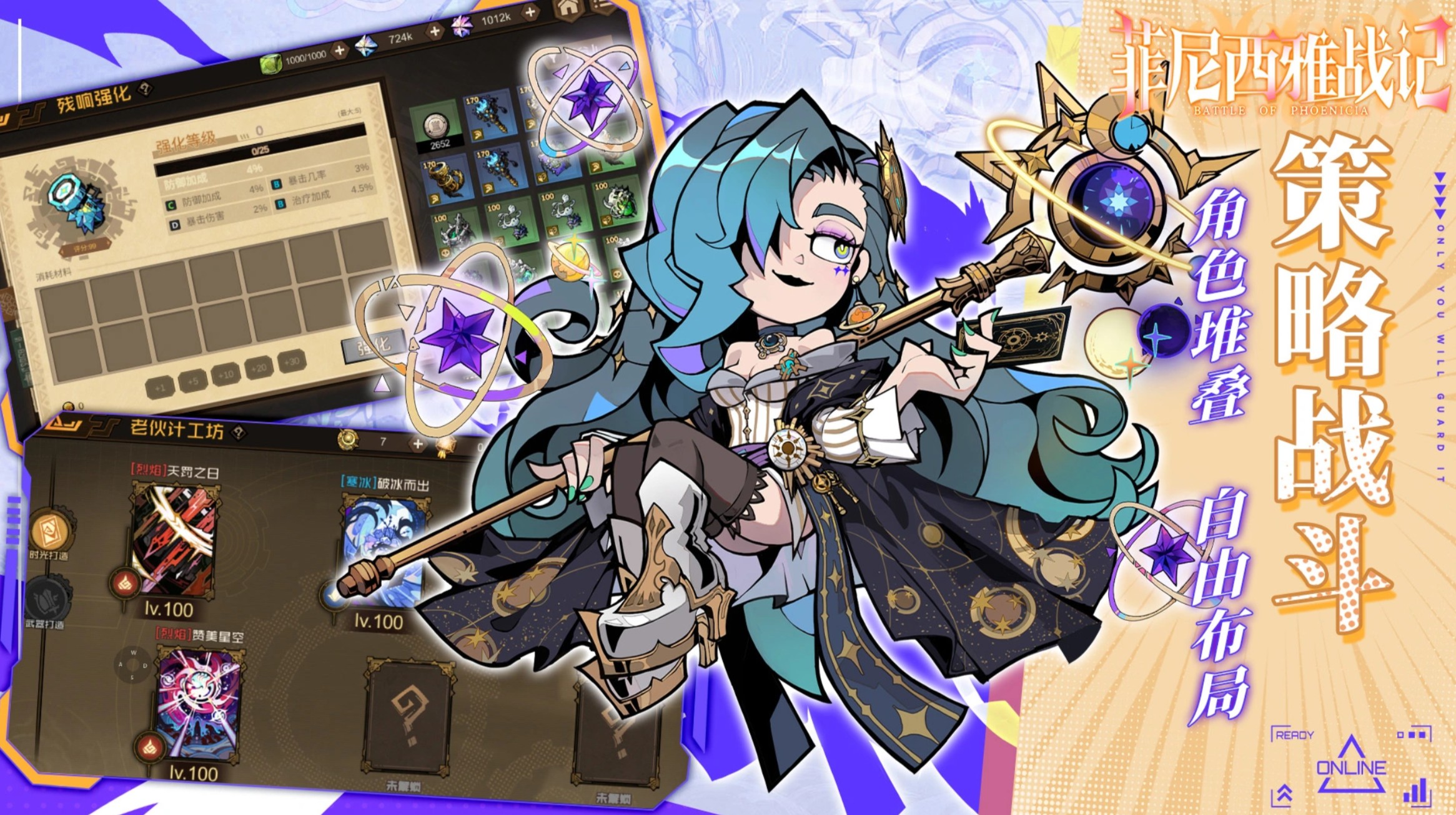 本作采用横版即时战斗框架,融合策略卡牌养成逻辑。核心战斗支持最多四名角色同屏协同作战,不同职业与技能组合将触发差异化连携技与场景反馈效果,上手门槛友好但深度充足。角色成长体系强调多维定制:除常规等级与星级提升外,还可装配功能性道具,部分道具具备技能重构能力,例如改变攻击范围、附加元素属性或重置冷却机制,显著拓展战术适配空间。