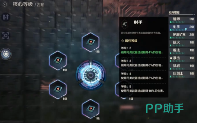 随着核心等级进一步提升,古珀系统也将开启。该系统设有六个装备槽位,支持安装九种不同属性类型的古珀,包括迅风、寒冰、炎火等元素类,以及拓荒、庇护等功能类。古珀按品质划分为小蓝(低阶)、中紫(中阶)和大橙(高阶),品质越高,基础属性加成越强。更重要的是套装效果的激活机制:任意两个相同类型的古珀即可触发基础联动,获得额外元素伤害与专属被动。例如坚岩古珀四件套可在受到攻击时自动生成护盾,极大提升角色的战场存活能力。