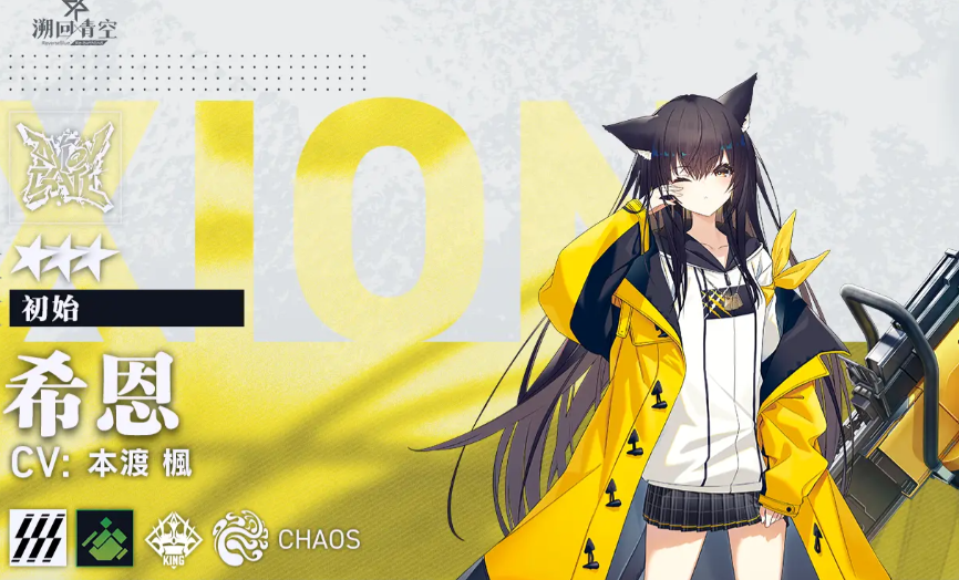 希恩拥有高度猫系特质,行为举止天真烂漫,缺乏基本生活自理能力,但战斗表现却十分出色。她出击时可增强己方轴灵子之门骑士的攻击力。技能效果为向前移动并施放一次共11段的物理伤害,随后自动返回初始部署位置;大招则是在前方大范围区域造成一次3段的物理攻击,具备良好的清场能力。