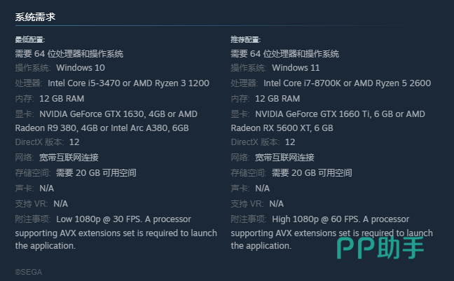 无论是最低配置还是推荐配置,系统方面均需满足64位处理器与Windows 10及以上操作系统的要求。内存建议至少配备12GB运行空间,同时预留不少于20GB的存储容量用于安装和更新。关于CPU与显卡的具体型号需求,可参考下方图表获取详细数据。