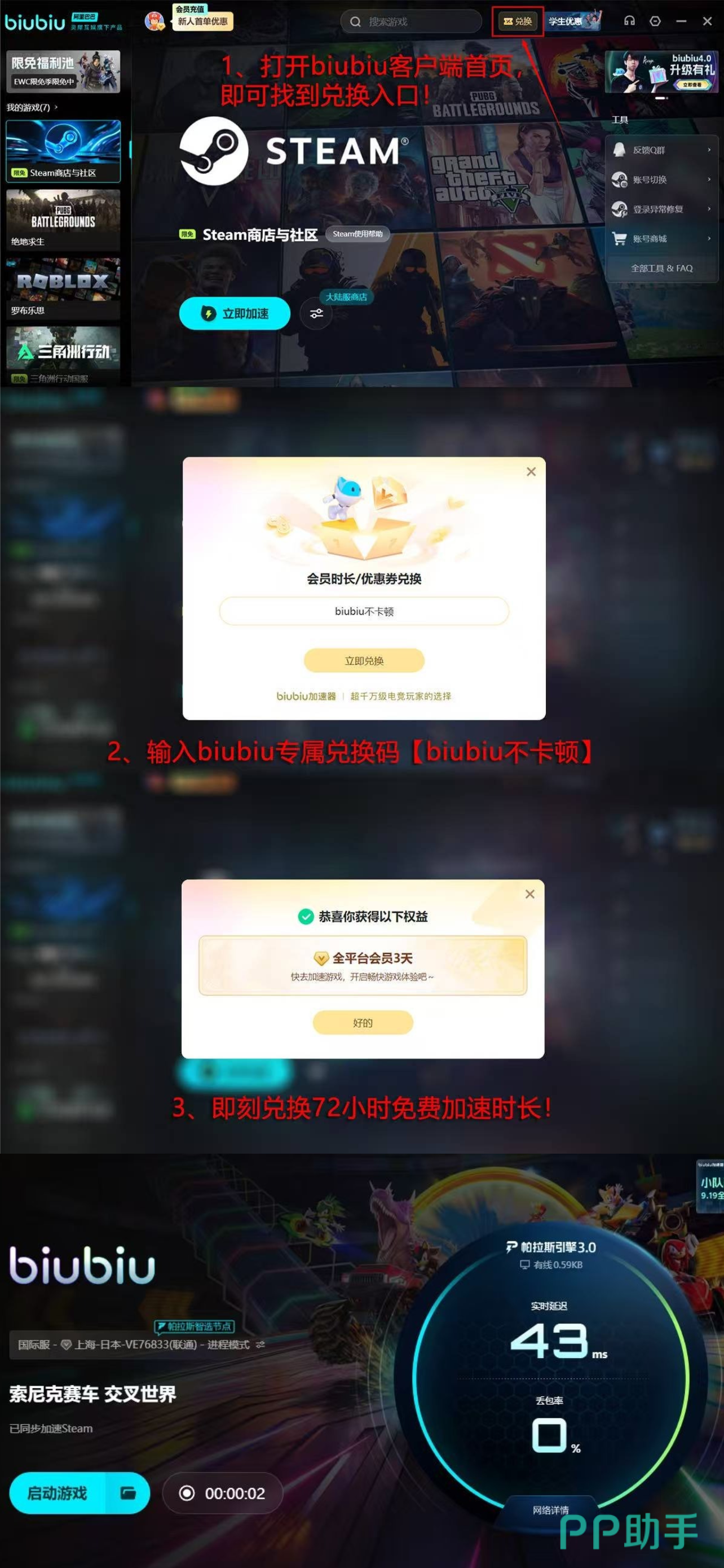 鉴于该游戏以高速竞速为核心玩法,网络稳定性至关重要。推荐搭配专业优化工具使用,如上方提供的biubiu加速器服务,能有效降低延迟、避免卡顿与闪退现象。特别提醒:新用户注册即可享受24小时免费试用权益,平台还额外赠送全体用户3天体验时长,只需在兑换页面输入【biubiu不卡顿】即可领取。