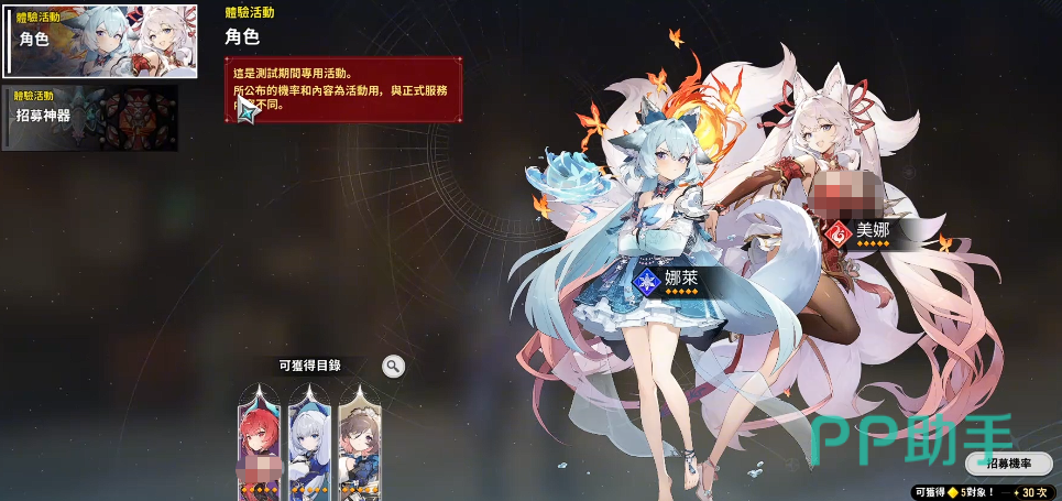 游戏世界观设定于人类、亚人种与野生魔物共栖的多元生态大陆。核心玩法围绕“魔物驯服—图鉴解锁—角色获取—队伍配置”展开。完成主线章节后,图鉴系统全面开放,此时玩家可通过限定卡池抽取角色。初始阶段推荐聚焦五星角色抽取,卡池设有30抽保底机制;当前版本规划首批上线5名五星UP角色,后续实际实装时保底规则可能微调。除角色卡池外,另设独立神器卡池,其抽取概率结构与角色池基本一致。神器作为角色专属武器系统,提供属性加成、技能特效及元素协同等多重增益。