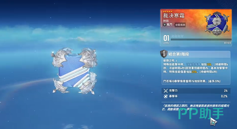 当前角色池呈现女性角色占比偏高的特点,整体美术风格统一采用高精度立绘与动态建模。在神器适配层面,前期泛用性较强的五星神器“裁决寒霜”值得优先关注:该神器赋予技能冰属性伤害+15%加成,持续4秒;期间每次命中目标,还可额外提升特殊技能伤害25%。此效果对多数近战/技能型角色均有显著增益。若搭配冰系角色,则可触发元素共鸣,进一步放大实战输出效率。