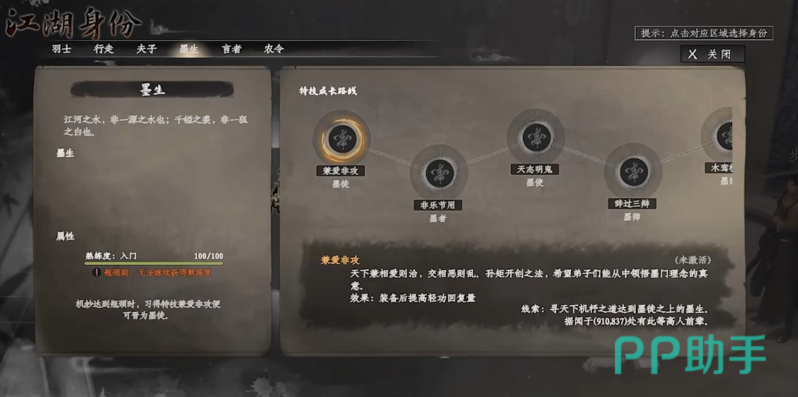 成为墨门成员后,角色的晋升体系与两个关键因素紧密挂钩:一是门派好感度的累积进度,二是枪棒能力和墨学知识的实际掌握水平。只有当这两方面同时满足对应门槛时,才能触发晋升资格。一旦达成条件,玩家可晋升为内门弟子,解锁更多专属资源获取权限及高阶活动参与资格。随着好感度不断提升,若个人能力持续进步,后续还将激活关门弟子乃至亲传弟子的进阶任务链,进一步拓展角色发展潜力。