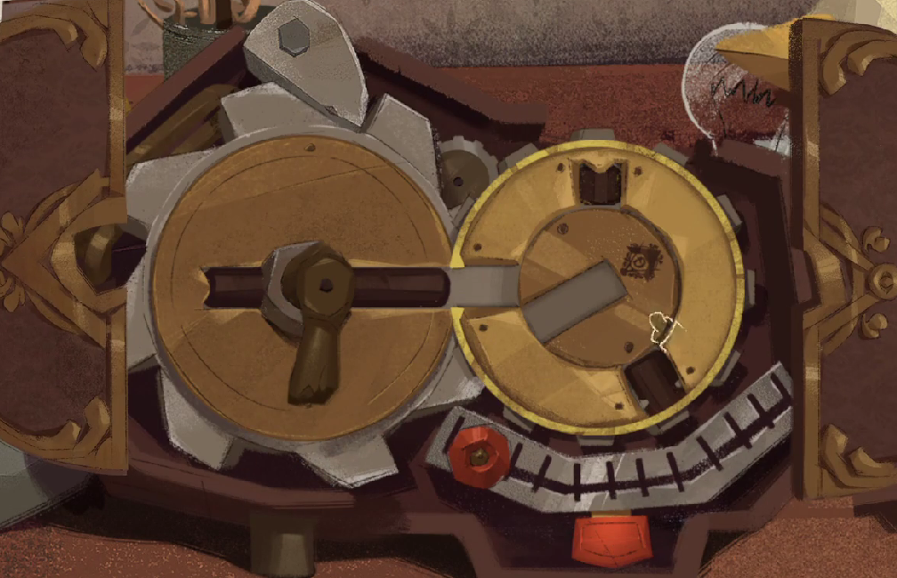 关键步骤在于对齿轮与木棍的精准安置。齿轮嵌入凹槽时需保持旋转角度一致,否则旋转轴无法对齐,直接影响后续的曲柄联动。玩家需利用微调机制,使齿轮与木棍在视觉与声音反馈中达到同步。此时,红色按钮成为测试机制的开关,按下后,原本静止的结构开始轻微震动,提示玩家抽出内部的长木棍。随着木棍被抽离,八音盒的把手也随之掉落,形成动态反馈链。
