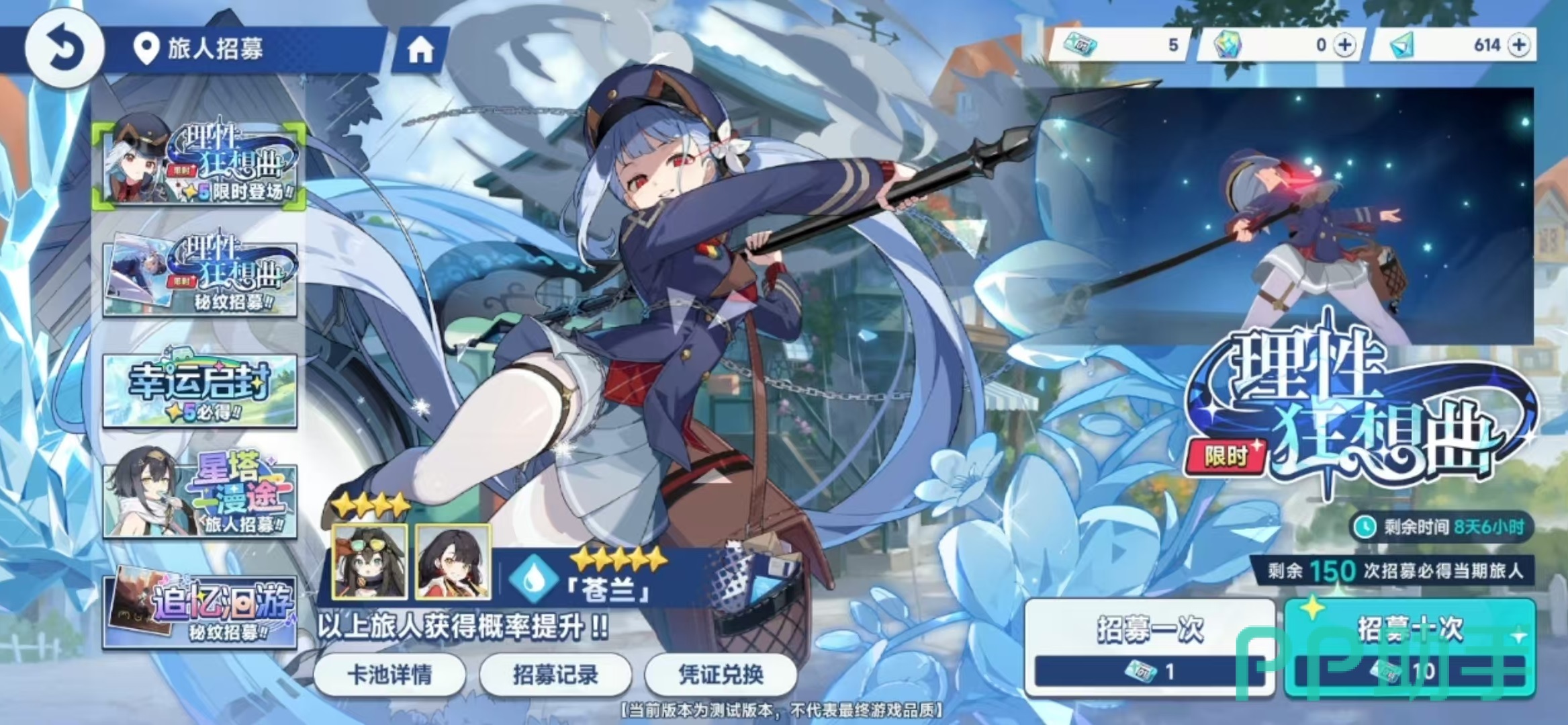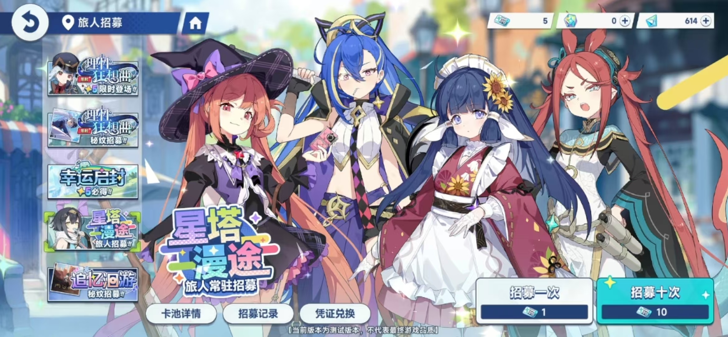 在星塔旅人中,角色主要通过三种招募池获取:旅人限时招募、幸运招募以及常驻招募。其中,幸运招募为新手专属活动卡池,仅在新服开启时出现一次,不可重复进入。该池使用启程礼券进行抽取,最多可进行30次招募,之后自动关闭。五星旅人的基础出率为1.6%,并设有强制定律——第30次招募必定获得一名五星旅人。因此,这是新人玩家组建核心阵容的重要机会,建议充分利用资源完成全部抽取。