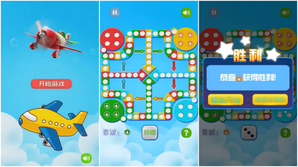 它是一款非常适合小伙伴一起快乐玩耍的益智小游戏,大家所代表的飞机会陆续从基地出发,通过投掷骰子的方式,决定每一次飞行的步数。游戏内会划分不同阵容,当大家的飞机和对手落到同一格中,会被判定为撞机,此时对手的飞机会被各位撞击驳回基地。《童年飞行棋》简单有趣的玩法,能够带给玩家们丰富的互动玩耍乐趣。
