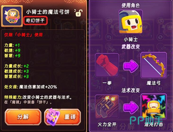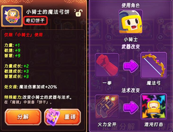特殊功能型饼干具备战略级价值,典型代表为“小骑士的魔法弓饼”。该饼干可触发角色职业转化机制:使原为近战定位的小骑士永久转职为远程法师职业,并同步替换武器类型与法术体系,彻底重构其输出逻辑与关卡适配性。此类饼干获取难度显著高于通用款,但一旦装配,将在特定副本、Boss战或PVP场景中形成不可替代的战术优势。需注意:饼干资源极其珍贵,切忌平均分配;应集中投喂至1–2名核心输出角色,最大化战力转化效率。
