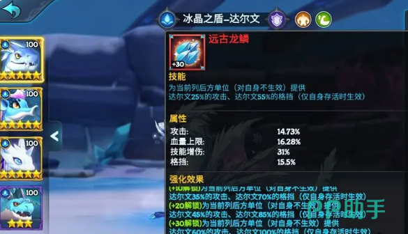 如果是前期的话在坦克角色的选择上,盾甲龙达文尔也是很好的选择,其独特的优势在于身披一层极为厚实的护盾,这面护盾并非一成不变,而是会随着角色等级的逐步提升而不断增强,能够有效地抵挡并抵消大部分来自敌方的物理与法术伤害,不仅如此达文尔自身还拥有较高的基础生命值和防御力属性,辅助角色方面,辅助龙珍则是治疗能力很非凡的选择,尤其对队伍中的龙单位更是有着额外的治疗加成效果,大家可以依据这几个适合前期用的角色来进行队伍阵容的替换,这样的阵容跟随主线才会更好用哦。