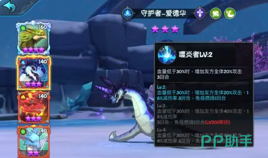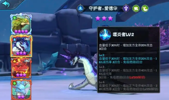 水系的爱德华他拥有群体回血和护盾施加能力,而其更为独特的被动技能在于,当自身血量低于30%时,能够瞬间触发全队加攻效果,玩家甚至可以通过取下他的加血装备这一操作,让他更容易达到触发被动的条件,暗盾在这一阵容中不仅可以为队友施加护盾,增强团队的生存能力,而且在必要时还能通过取下部分装备的策略,在开局第二回合献祭自己,凑齐元素buff,为队伍创造更多的优势,当然如果在没有暗盾的情况下,土盾也可作为一种替代方案登场,不过需要注意的是,土盾主要侧重于提供护盾保护,并不具备献祭的功能。