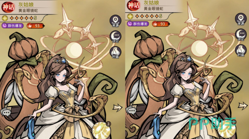 灰姑娘为五星光系常驻角色,前期即可承担全图范围辅助职能,中后期则转型为残血收割者。其被动提供可观的暴击率与爆伤提升,并对生命值低于30%的目标造成额外伤害。更重要的是,她能为全体友方单位提供攻击加成与闪避率增益,属于典型的“双修型工具人”,在需要兼顾输出与生存的高难度关卡中价值突出。