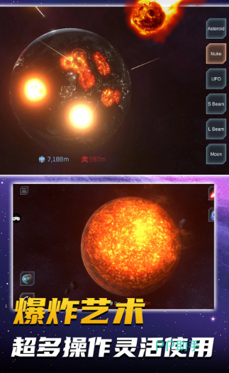 玩家可通过多样化的高科技工具,如引力波发生器、等离子切割器等,对星球进行改造与破坏,体验前所未有的操控感。玩家需在有限资源下,合理选择工具与时机,以达到最大破坏效果或完成特定任务。例如,通过精确计算引力场变化,玩家可以引发星球内部的连锁反应,最终导致其爆炸。
