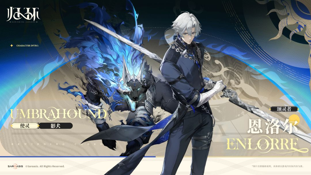首位登场的是恩洛尔——洛伦监察体系中最为年轻的首席监察官,亦是摄政王唯一的子嗣。他主动疏离王室权位,以绝对中立与铁腕执行力确立司法权威。其属性为暗系,战斗风格冷峻高效,象征秩序对混沌的压制。他所颂出的使灵“影犬”,属王室专属高阶使灵,稀有度极高,具备极强的攻击性与战场控制力,极少在民间流传。