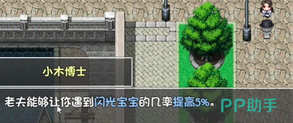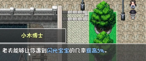 除此之外还有一个非常好用的小方法,就是玩家需要找到下方的NPC这位小木博士就能够提高遇见闪光宝的概率,并且要在NPC角色那里解锁千里追踪技能,这一技能不仅可以使全队遇见极其稀有即更古未有几率增加10%,而且它还可以持续300回合,让闪光宝宝这种稀有怪物的boss获得概率提升5%。