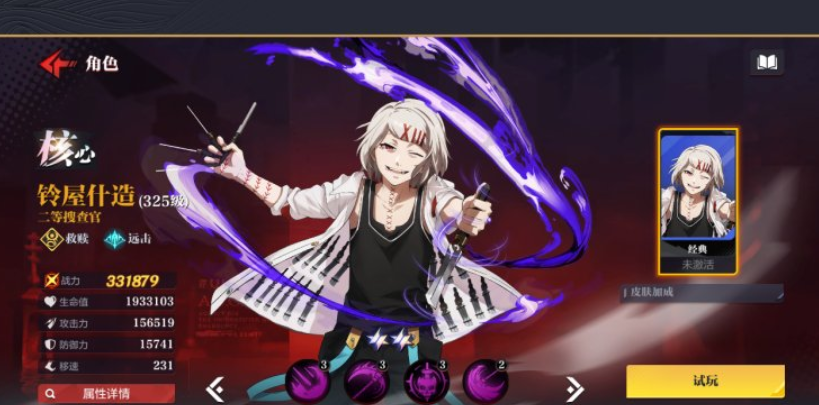 首位推荐角色为金木研,隶属不灭阵营,定位为高风险高回报型近战输出。其核心机制围绕“血量越低,单次爆发越强”展开:基础技能“血色风暴”可锁定敌方最高输出单位进行范围打击,并在命中时进入被动免打断状态;当生命值低于50%时,该技能伤害提升显著;更关键的是,每次物理命中均可恢复50点怒气,大幅缩短大招循环周期;终期突袭技具备穿行路径伤害,对沿途目标施加全额物理输出,使其在残局收割与反打节奏中具备极强决策权重。