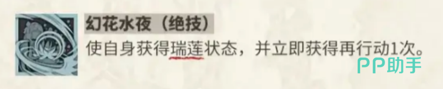 真正让睡莲脱颖而出的是她的绝技“幻花水夜”,释放后可进入“瑞莲状态”。在此状态下,她不仅能提升自身攻击力,还能立即获得一次额外行动机会,极大增强了战术调度的灵活性。更重要的是,此时释放的职业技能将转变为范围性控制技,能将周围敌人牵引至中心,并附加“脆弱”与“沉睡”效果。前者提高目标所受伤害,后者使其无法行动,直至受到攻击才解除,形成强力压制链。