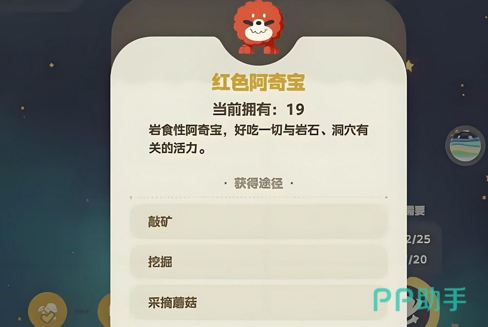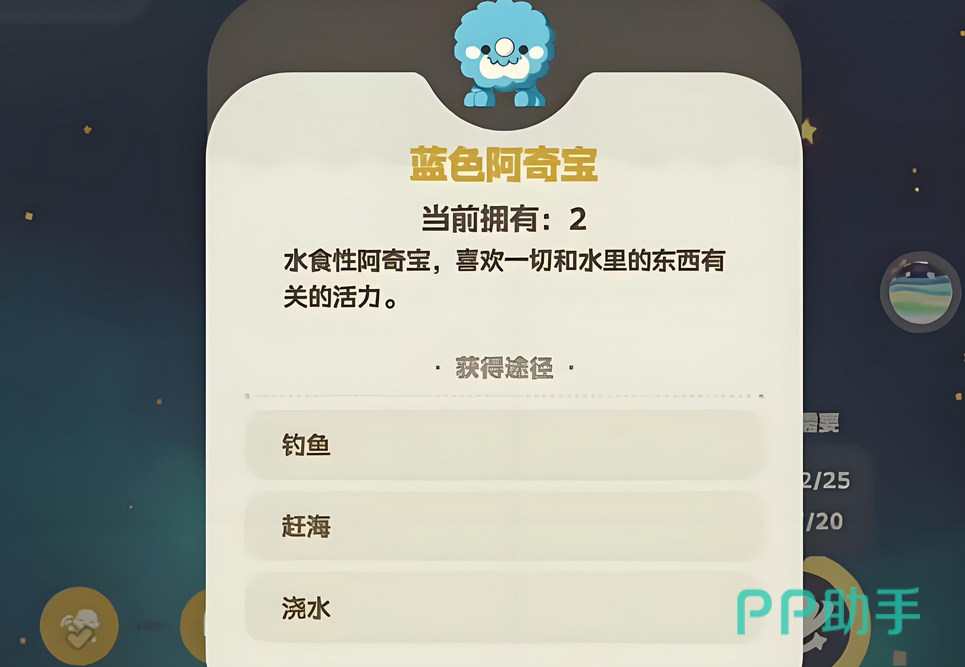 首先是白色阿奇宝,属于杂食性精灵,几乎参与任何类型的活动都有机会遇到它,覆盖范围最广。其次是红色阿奇宝,这类精灵偏好岩石环境相关的能量来源,主要通过敲击矿石、挖掘地下资源或采摘洞穴中的蘑菇来获得。第三种为蓝色阿奇宝,具有水属性特征,喜欢与水域相关的活动所产生的活力,例如钓鱼、赶海以及为植物浇水等操作均可触发其出现。