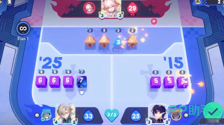 参与门槛为开拓者等级不低于21级。玩法采用3分钟限时对战制,双方需通过拖拽骰子至交换区完成资源调配。当己方交换区未出现目标骰子时,可点击队友角色身上的对应骰子发起协同交换请求,实现战术联动。匹配模式支持自由组队或好友邀请,支持1v1、2v1等多种对战结构;局内还可消耗战术点购买战术卡,强化角色能力。