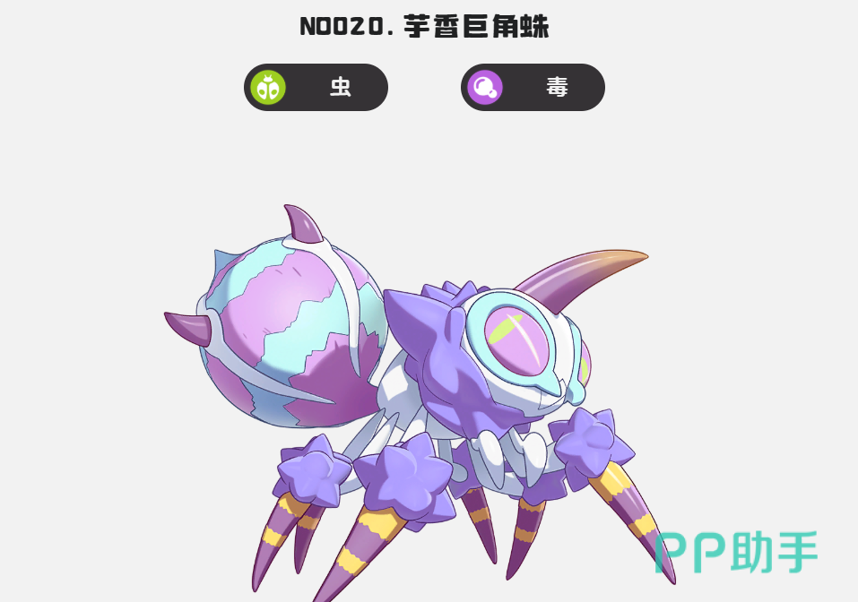 芋香巨角蛛是由尖角蜘蛛在达到40级后进化而成的精灵,尽管许多玩家尚未成功完成这一进化过程,但提前掌握芋香巨角蛛的实力表现依然具有重要意义。接下来,本文将为大家全面解析这只即将登场的虫系毒属性精灵的各项能力与战术定位。