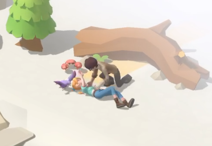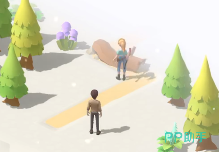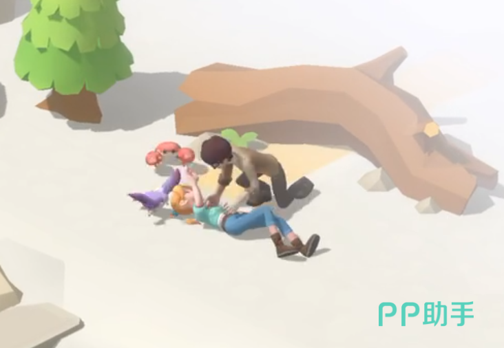 在前往救援的路上,可以顺手收集沿途的树枝资源。当砍伐两棵树后,便可抵达求救信号发出的位置。在那里,我们会遇到受伤的角色唐恩。通过他背上的标识牌,确认了当前所处的位置正是珍珠岛。由于唐恩伤势需要处理,我们的首要任务是寻找可用于治疗的药草类物品。