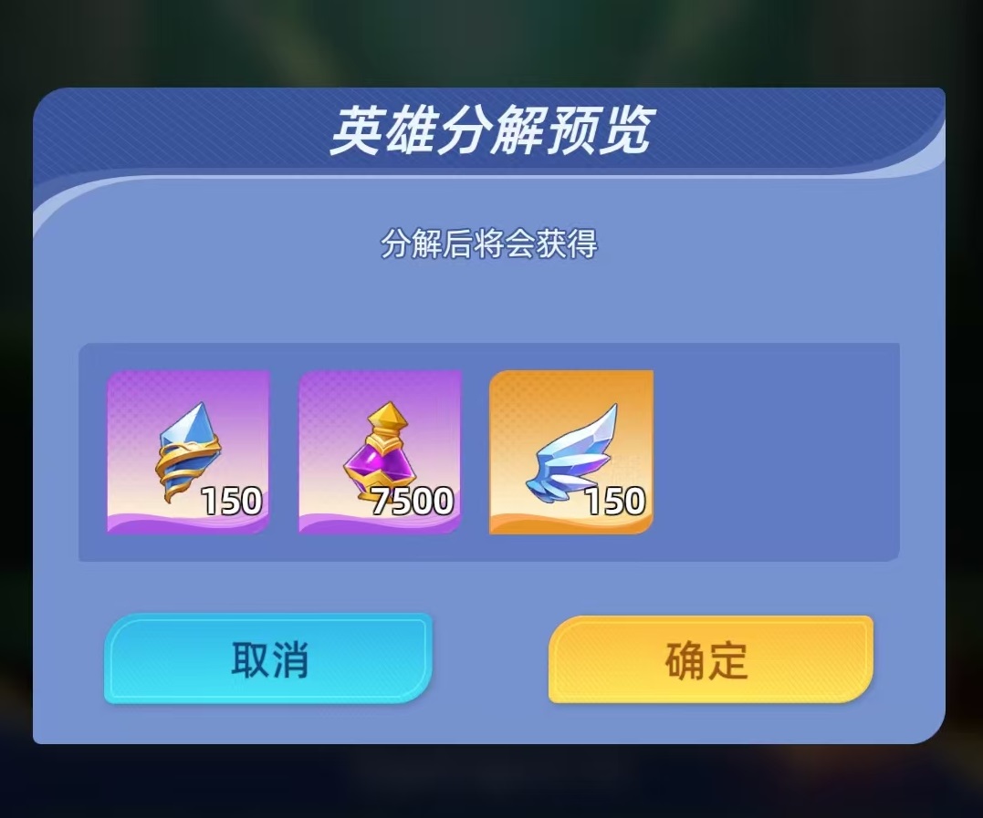 英雄分解适用于五星及以下英雄。二星及以下英雄分解后仅返还进阶石;三星及以上英雄除进阶石外,额外产出英灵之翼。该道具为英雄商店的核心货币,可用于兑换圣光阵营、永夜阵营的指定英雄碎片,亦可置换阵营专属碎片,用于随机合成补足仓库缺口。系统提供批量筛选与快速勾选功能;当角色等级达60级后,开放一键分解机制——自动清除所有三星及以下英雄,但每个阵营将强制保留30名三星英雄作为升星基础材料,防止因误操作导致升星链断裂。