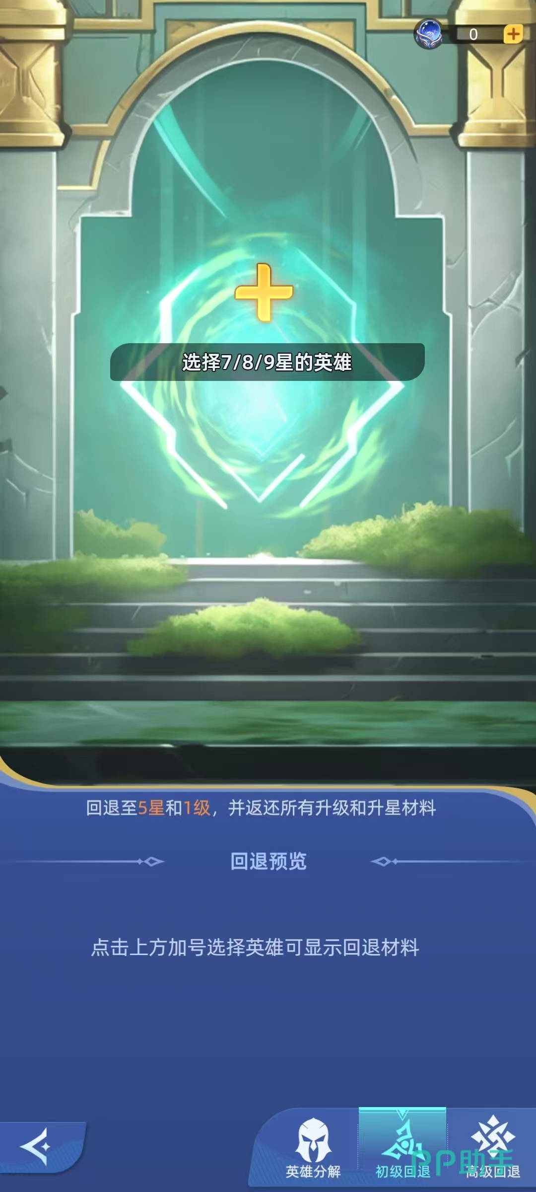 英雄祭坛共设三大核心模块:英雄分解、初级回退与高级回退。三者协同运作,构成一套完整的英雄生命周期管理体系——既支持低效资源的即时转化,也保障高投入英雄的可逆调整,从而在不损害长期成长路径的前提下,实现阵容结构的动态演进与背包容量的智能释放。