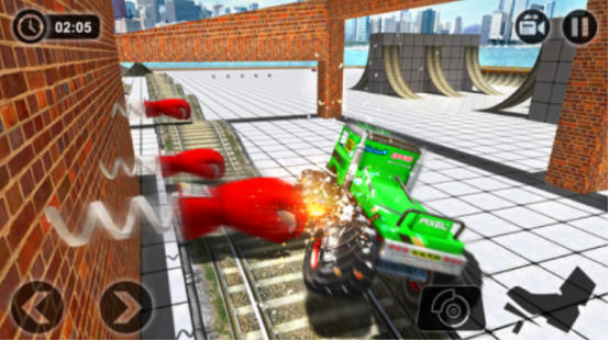 游戏给玩家带来了特别震撼的视觉效果,在这里将各种车子完美集合,比如有经典的汽车以及4×4吉普车等等,每一种车辆的驾驶操作方式以及主要的性能是完全不同的,玩家在这款游戏中,就要选择自己喜欢的车子,并成功驾驶去感受撞车的爽快感。在每一场赛车比赛中都会呈现出不同的障碍物,比如汽车冲床以及破碎机等等,因此必须要及时躲避各种障碍物,还要展现出特技技能。