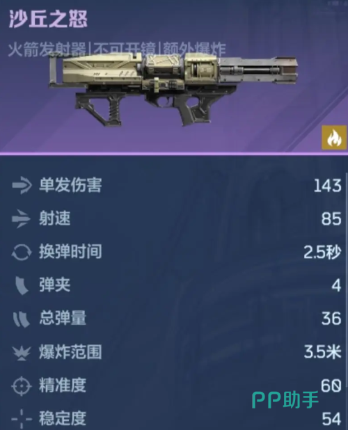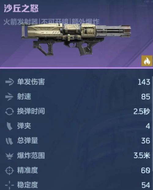 该武器为金色品质,赛季等级达到35级即可免费解锁。基础参数为单发伤害149点,前置弹量8发,总弹量72发,元素类型归属火焰系。其设计逻辑聚焦于群体覆盖——尤其适用于地图推进与金币/材料高效刷取场景;进入高血量单体目标阶段时,建议及时切换至其他主武器以保障输出节奏。