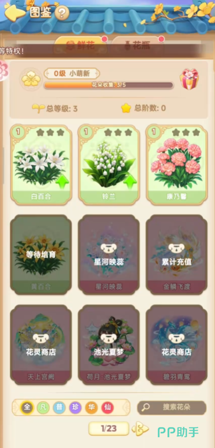 花坊室内换装的入口在主界面,进入花房右上角的装修图标当中,所谓室内的花房,也就是小伙伴们自己的家园,这里的花朵数量通常不如外边丰盛,但是室内花房会有插花,摆件,墙纸,地板和家具等等装饰物。玩家们可以根据自己的喜好来进行自由的搭配,同时系统最多可以保存三套自由装配的方案,小伙伴们在搭配出满意的室内场景之后可以将其保存起来,这样就会方便下次拍照或者截取其他的PC订单。