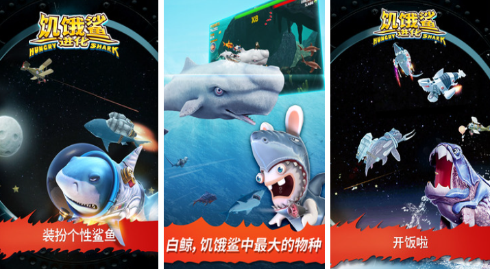 这款饥饿鲨题材手游拥有逼真环境和物理特效,海底景象复杂又井然有序,各种各样的鱼群穿梭其中形成真实的生物链,随机出现的穿越门可让大家进入极寒之地进行吞噬,海龟、企鹅还有大螃蟹等海底生物均为你的猎物,大白鲨和锤头鲨等海洋顶级掠食者均可解锁进行吞噬任务,各种搞笑的装饰道具会让鲨鱼形象更滑稽。