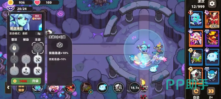 当挑战无尽模式时,技能成长机制迎来扩展:一旦角色三项技能全部升满,后续可在三个方向进行无限强化。具体表现为,在普攻分支下方继续升级可提升攻击速度;被动分支延伸则增强基础攻击力;主动技能路径的持续投入则缩短其冷却时间,实现更高频率释放。此外,游戏支持技能自动释放功能,但当前逻辑尚存优化空间,尤其需警惕部分角色在施放技能后会立即退出战场,可能影响整体战术连贯性。
