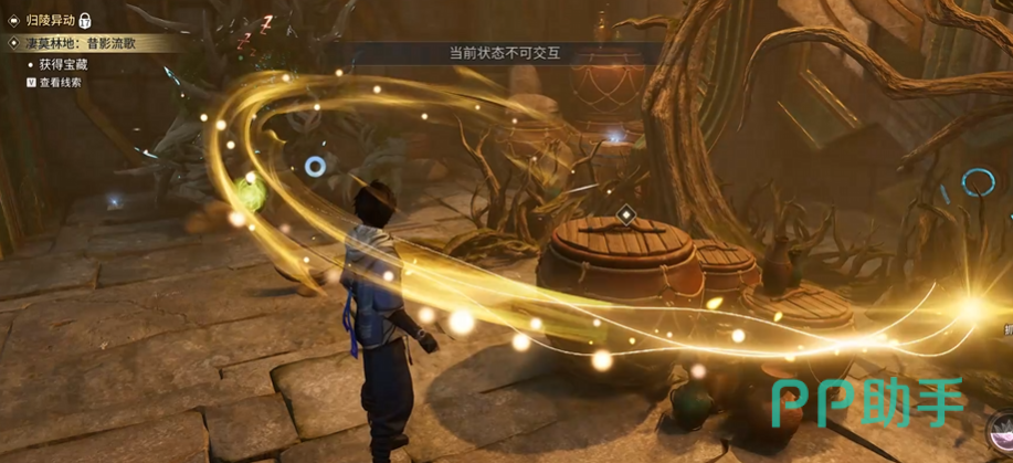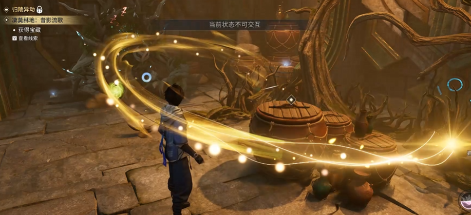 第三枚钥匙碎片需返回一层平台,与初始NPC重新对话后触发Boss战,对手为丰华硕木。击败该Boss后即可获得最后一枚钥匙碎片。集齐三枚后前往石门前进行合成提交,石门随即开启。深入内部后找到酒坛并交互,静待周边小怪自动消失,随后触碰酒坛旁的唤灵盘,即视为「鲲游」任务正式完成。