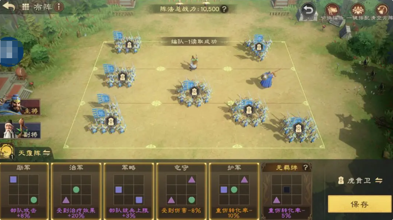 在技能升级路径上,优先提升“神医济世”的等级是确保队伍持久作战能力的关键,更高的治疗系数直接转化为更强的战场续航。辅助技能“青囊书”与“五禽戏”可全面提升部队的生存属性,建议后续逐步点满;而“麻沸散”虽非核心,但在面对控制链密集的阵容时具备一定的反制作用。资源分配应遵循主次分明的原则,以最大化性价比。阵法方面,“天覆阵”为最优选,其释放技能后的概率性治疗效果与华佗主动技形成联动增益。配合许褚的减伤被动,可构建起物理防护与生命恢复双重保障体系:外层由许褚承担伤害减免,内层由华佗持续补血,大幅提高整支队伍在高压环境下的存活率。若尚未获得“天覆阵”,“长蛇阵”亦可作为过渡替代方案,尽管防御加成稍弱,但获取难度较低,实用性依然可观。