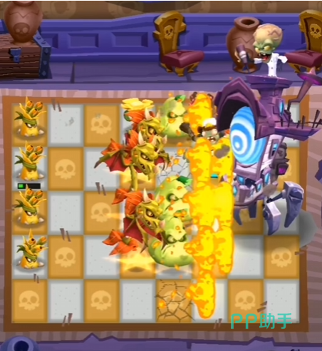 在输出配置上,激光豆具备直线穿透能力,能同时打击僵尸博士本体及其召唤出的小型僵尸,实现高效清场。卷心菜投手则凭借抛物线投掷优势,能够越过前排防御单位,精准命中机甲顶部弱点。即使战场被毒气笼罩导致部分植物进入隐形状态,卷心菜投手的攻击依旧不受干扰,持续施加压制火力。掌握这些战术要点后,玩家便可大幅提升击败僵尸博士的成功率。