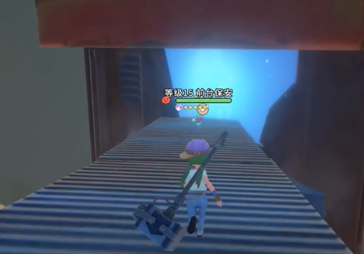 继续深入,前方出现垂直悬崖壁,沿其边缘前行一段距离后,可见一条通向下方的蓝色螺旋楼梯。途中散布若干普通敌人,若等级达标可顺手清理;若资源紧张或时间有限,亦可选择绕过,直抵底层。底部区域中央存在一处持续散发蓝光的交互点,但需先清除守卫“前台保安”方可靠近。成功互动后,正式进入失乐园商场内部,同步触发新阶段任务:搜寻并取得“奇怪的能源核心”。此时,最终挑战——BOSS“机器猫”登场,建议提前备足生命恢复类道具。