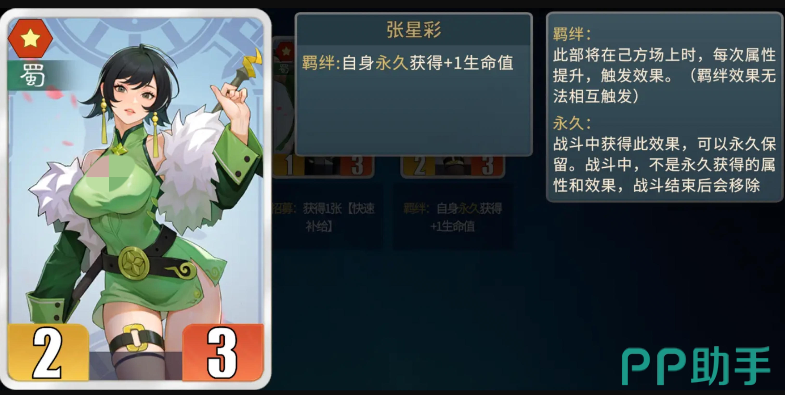 在前期阵容搭建过程中,张星彩和白毦兵是非常实用的选择。这两张卡牌获取成本低,养成资源需求少,且羁绊触发条件简单,配合刘备的属性加成,能在开局阶段形成较强的抗压能力。若在抽卡过程中获得具备屏障或不屈效果的前排武将,也可直接纳入阵容使用。得益于刘备提供的额外生命支持,这些防御型部将在前线的存活能力显著增强,极大提升了整体阵容的稳定性。多数对局中,只要能顺利度过前四回合,后续的发展路径将更加清晰可控。