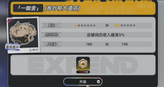 当基础运营步入正轨后,进阶目标应聚焦于店铺效能跃升。经营面板左上角的星级标识即为升级入口,消耗指定材料或游戏内货币,即可激活升级模块。以一星升级为例:店铺基础收入提升5%,同时客流上限同步增长,形成“收入+流量”双重正向循环。整个开店体系高度还原现实商业逻辑——从选址评估、人力配置、供应链管理到品牌升级,每个环节均需策略性决策。