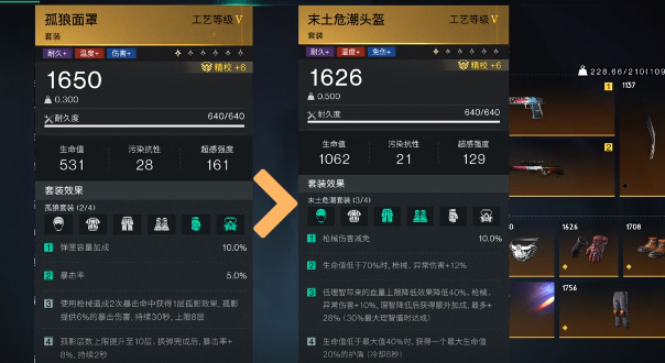 在装备方面,如果准备走暴力路线可以选择三木土加两孤狼,能有效提供50%的枪伤,还有50%的异常伤害。两个孤狼就可以增加弹夹的容量以及暴击率,可以给后续使用大白鲨做准备。